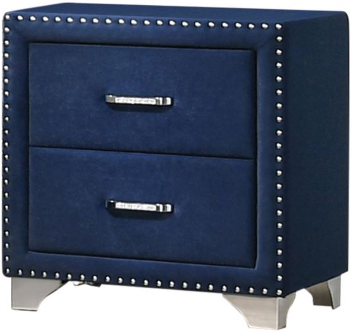You've never seen furniture so elegant until this nightstand entered the picture. Entirely upholstered in velvet, this nightstand is a conversation starter. It has two spacious drawers to store your bedside items. Nail head trim makes a glorious statement that matches the tapered legs. With its stunning and regal design, this nightstand will make your sleeping space feel like royalty.