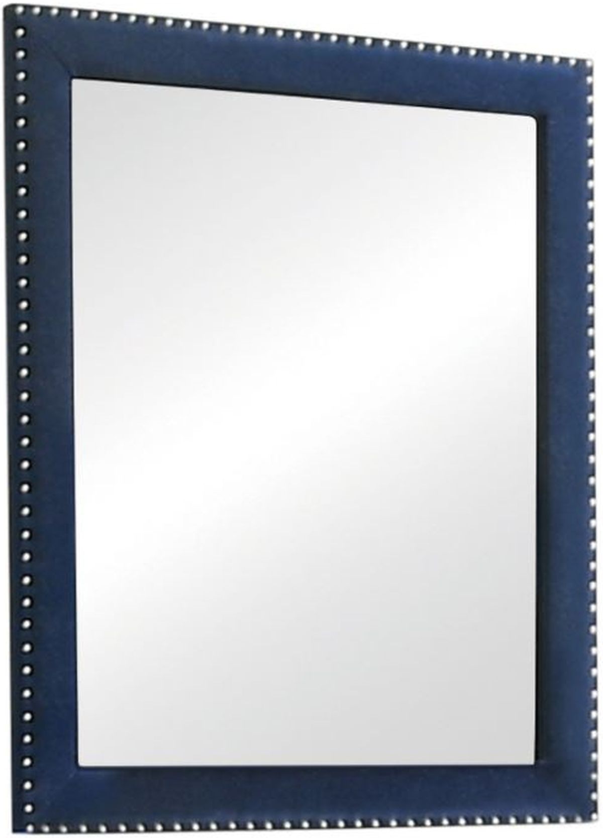 This gorgeous mirror is a masterpiece made for royalty, ready to perk up your sleeping space. Its admirable frame is upholstered entirely in gorgeous velvet fabric. Nail head trim surrounds the frame for a sleek and exquisite upgrade. Place this mirror on top of a matching dresser and watch how your sleeping space becomes transformed. Designed for glam-style bedrooms.