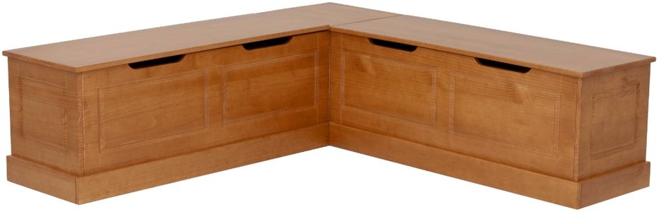 Add classic warmth and smart storage to your space with this backless corner nook bench in a rich caramel finish. Crafted from a blend of solid pine and MDF, this L-shaped bench features clean lines, finger-jointed panel detailing, and a UV varnish that enhances the natural wood grain while protecting against daily wear.Read More